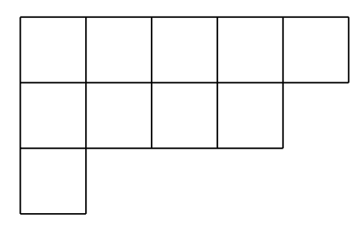 The homology class of does not depend on . There is a geometric way of describing a non-decreasing sequence which helps with understanding the computations involving Schubert cycles. A Young diagram is a finite collection of boxes, or cells, arranged in left-justified rows, with the row lengths weakly decreasing (each row has the same or shorter length than its predecessor). Listing the number of boxes in each row gives a sequence of non-negative integers, such that is the total number of boxes of the diagram. Figure 1 shows the Young diagram of . A special case of the so-called Pieri formula states that