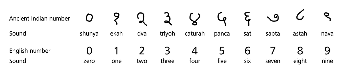 The origins of the mathematics that emerged in the Indian subcontinent can be seen around the Shulba sutra period, around 1200 BCE to 500 BCE. During this period the numbers up to were counted (in Vedic Sanskrit this number was referred to as Paradham). The Vedic period mathematics was confined to the geometry of fire-altars and astronomy, and these concepts were used to perform rituals by the priests. Some of the famous names from that era are Baudhayana, Apastamba, and Katyayana. In Table 1 we describe Sanskrit sounds and their corresponding English numerals. Indian mathematics also introduced the decimal number system that is in use today and the concept of zero as a number. The concepts of sine (written as jaya in Sanskrit) and cosine (cojaya), negative numbers, arithmetic, and algebra were found in ancient Indian mathematics [6 B. Datta and A. N. Singh, History of Hindu mathematics: A source book. Part I: Numerical notation and arithmetic. Part II: Algebra. Asia Publishing House, Bombay–Calcutta–New Delhi–Madras–London-New York (1962) ]. The mathematics developed in India was later translated and transmitted to China, East Asia, West Asia, Europe, and Saudi Arabia. The classical period of Indian mathematics was often attributed to the interval from 200 CE to 1400 CE, during which works of several well-known mathematicians, like Varahamihira, Aryabhata, Brahmagupta, Bhaskara, and Madhava have been translated into other languages and transmitted outside the sub-continent.