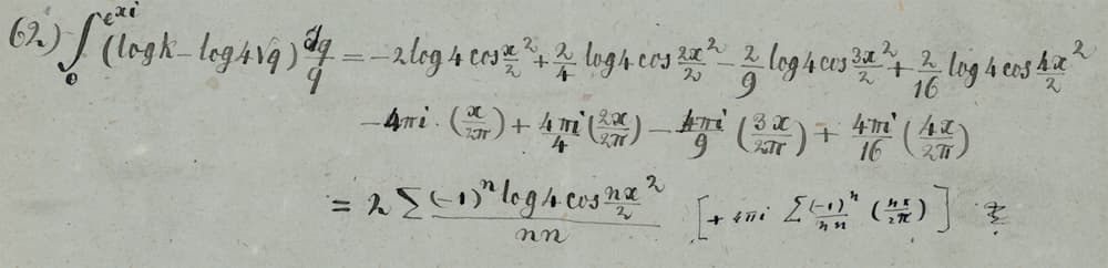Early in his correspondence with Dedekind, Weber mentioned that he would be “very interested” in being able to “decipher” the manuscripts on “the distribution of electricity on three spheres” [sic], which he hoped to be able to achieve since “on one of the sheets the results seem to be essentially in place” [32 K. Scheel, Der Briefwechsel Richard Dedekind – Heinrich Weber. 5, Abhandlungen der Akademie der Wissenschaften in Hamburg (5), De Gruyter Oldenbourg, Hamburg (2014) , p. 62, letter from March 22, 1875]. As this last remark suggests, Riemann’s manuscripts in Cod. Ms. Riemann 5 contain many sheets with various states of development of his investigation. There are 27 pages by Riemann’s hand, for 4 pages of text by Weber, and certainly the material differences of each mathematician’s handwriting and use of paper do not account for such a large difference. In fact, many of Riemann’s notes contain similar computations, see Figure 2.