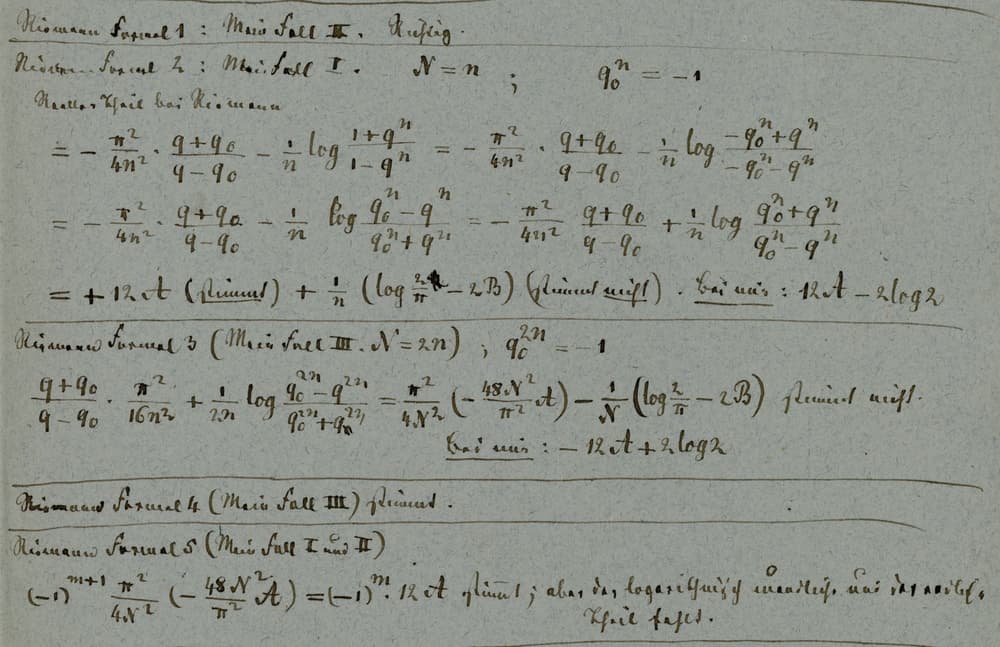 This was also defended by the historian Harold M. Edwards, in [9 H. M. Edwards, The Algorithmic Side of Riemann’s Mathematics. In A Celebration of the Mathematical Legacy of Raoul Bott, ed. by R. Bott and P. Kotiuga, CRM Proceedings & Lecture Notes, American Mathematical Society, Providence (2010) ], who argued for a strong – albeit maybe hidden in drafts – algorithmic component in Riemann’s mathematics. Edwards showed how Riemann, while he may have been “primarily interested in grand general abstract concepts,” on several occasions “did not venture into these higher realms without doing a lot of serious computation to lay the groundwork for his flights.” [9 H. M. Edwards, The Algorithmic Side of Riemann’s Mathematics. In A Celebration of the Mathematical Legacy of Raoul Bott, ed. by R. Bott and P. Kotiuga, CRM Proceedings & Lecture Notes, American Mathematical Society, Providence (2010) , p. 64].21Note that Arias-de-Reyna also claims that Dedekind’s misinterpretation of Riemann’s fragments on modular elliptic functions is related to his overlooking the importance of computations for Riemann. These observations are confirmed by Riemann’s archive, in particular by the many parts that remain unpublished – which Carl Siegel, of course, knew very well.