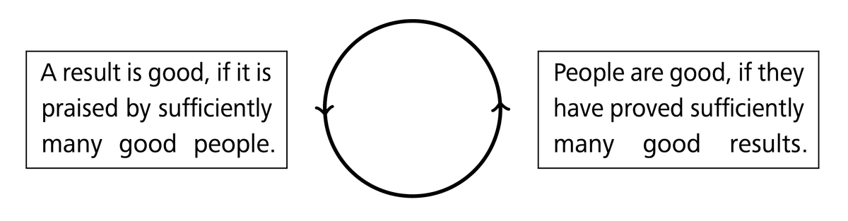 Hardy made several clever comments concerning the definition of “good” mathematics, which should be read in the original; see [5 G. H. Hardy, A mathematician’s apology. (With a foreword by C. P. Snow.) Canto, Cambridge University Press, Cambridge (1992) , p. 89]. However, in real life one falls the circulus vitiosus shown in Figure 1.