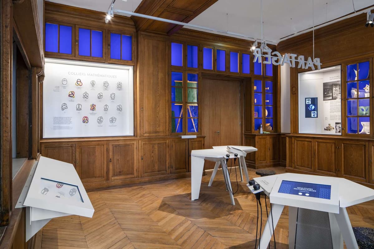At first, the museum concept relied on a few rough ideas launched by the former directors, Villani and Uzan. These ideas ranged from celebrating the founders (Borel, Perrin, Rockefeller, Rothschild) and telling the story of the building to showcasing a selection of mathematical objects from IHP’s collection of around 600 pieces (Figure 5) and developing a most innovative outreach experience in mixed reality, Holo-Math (Figure 6).5https://holo-math.org