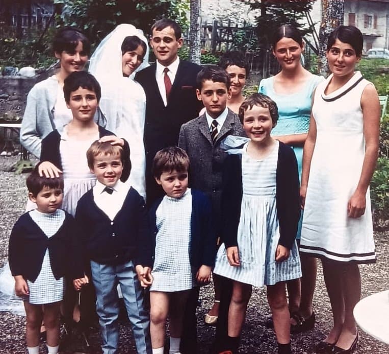 Claire (third from the bottom left) with her family in 1966 (courtesy of Claire Voisin).