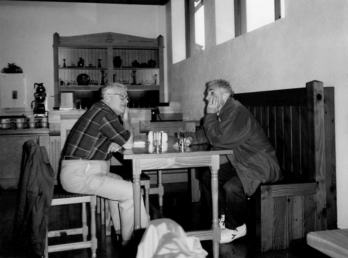 On the Ireland tour, the Salce line-up included, in addition to Paola and me, Iacopo and Giuseppe, then aged 15 and 9, while the Fuchs line-up included, in addition to Shula and László, our mutual friend Claudia Metelli. We were in two rented cars and toured most of Ireland. I remember that I got a flat tyre on a rough stretch of the road and that László’s help in changing the tyre was providential. I have kept a photo taken by Iacopo as we were changing the tyre, László caught bent over in profile and me, leaning forward, mercilessly taken from the back. The black Cliffs of Mohere, the emerald expanses of the Irish meadows, the stops at local pubs (see Figure 2) and the tasty salmon dinners (which only Iacopo detested) stand out in my memory.