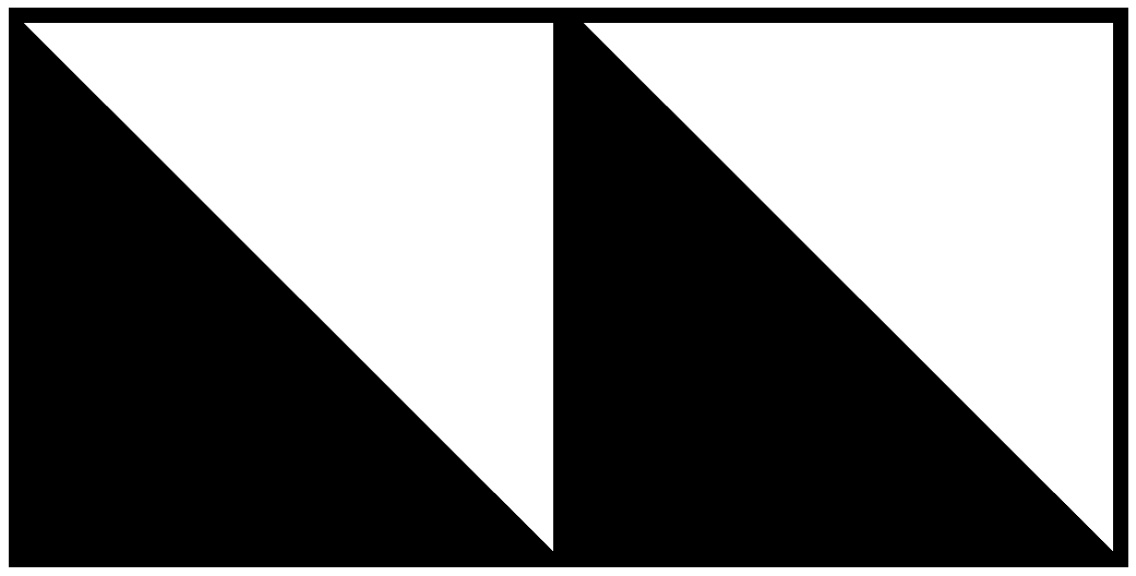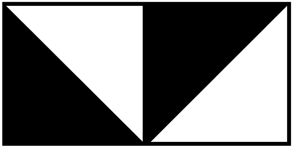 The first mathematical ingredient in the series Transitions, the Truchet tile, is itself at the crossroads of science and art, as we shall see. It takes us back to an important milestone in the development of combinatorics, when Father Sébastien Truchet (1657–1729), mathematician, typographer, “clockmaker, great canal specialist, inventor of countless machines (cannons, tree-transplanting machines, sundials, etc.) including the famous mechanical tables of Marly” [1 J. André, De Pacioli à Truchet: trois siècles de géométrie pour les caractères. In 4000 ans d’histoire des mathématiques: les mathématiques dans la longue durée. IREM de Rennes, Rennes, France (2002) https://bibnum.publimath.fr/IWH/IWH02004.pdf], became interested in the different relative positions of two squares, both divided into two colors: given two identical squares, split in two along the diagonal, with one half white and the other black (see Figure 2), in how many ways can they be arranged in relation to each other?