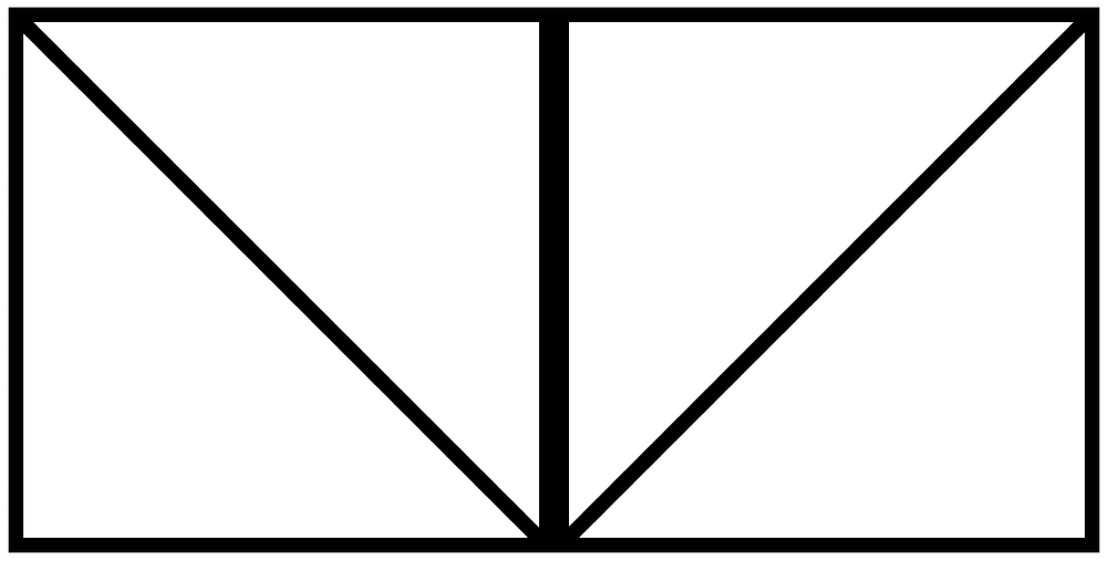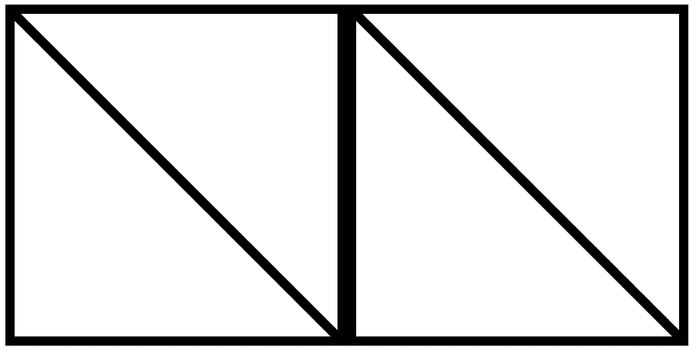 We now add a diagonal to each: there are, a priori, two possible choices of the diagonal in each of the two squares, so four possibilities; but they are two by two identical by flipping, which leaves us with the two configurations: