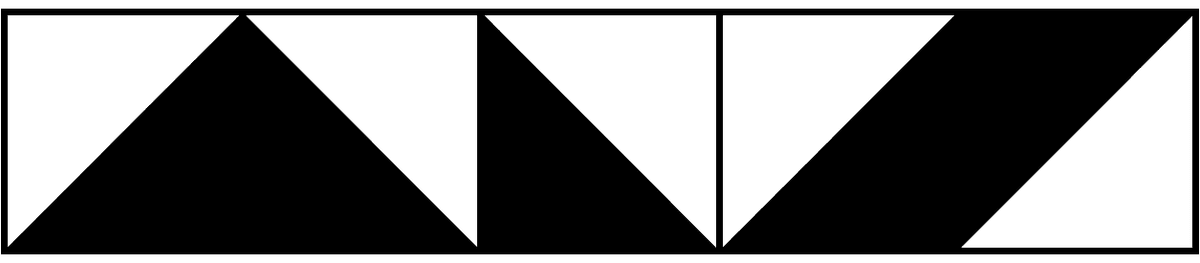 The result points the way to another, even more straightforward demonstration: allowing rotation, the two tiles can be arranged in a line and, allowing flipping and color inversion, we get the following pattern first.